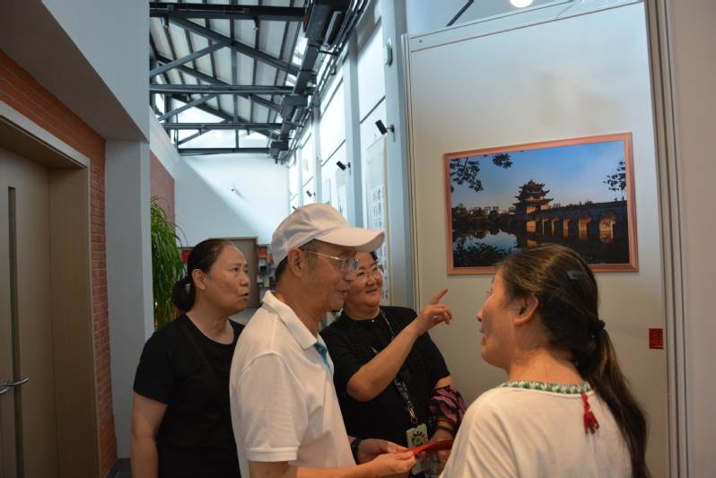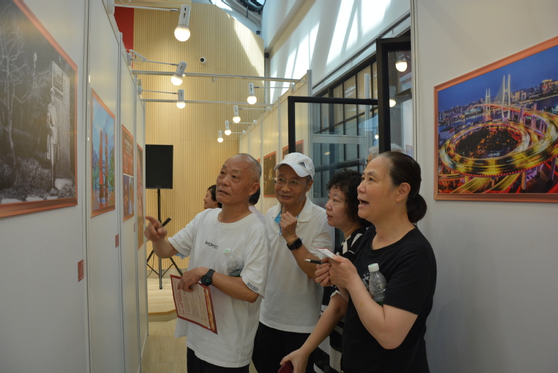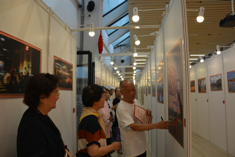 老同志们饶有兴趣地参观了摄影展。