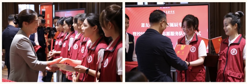 校领导裴小倩、徐卫为志愿服务队颁发聘书,并分批合影留念。