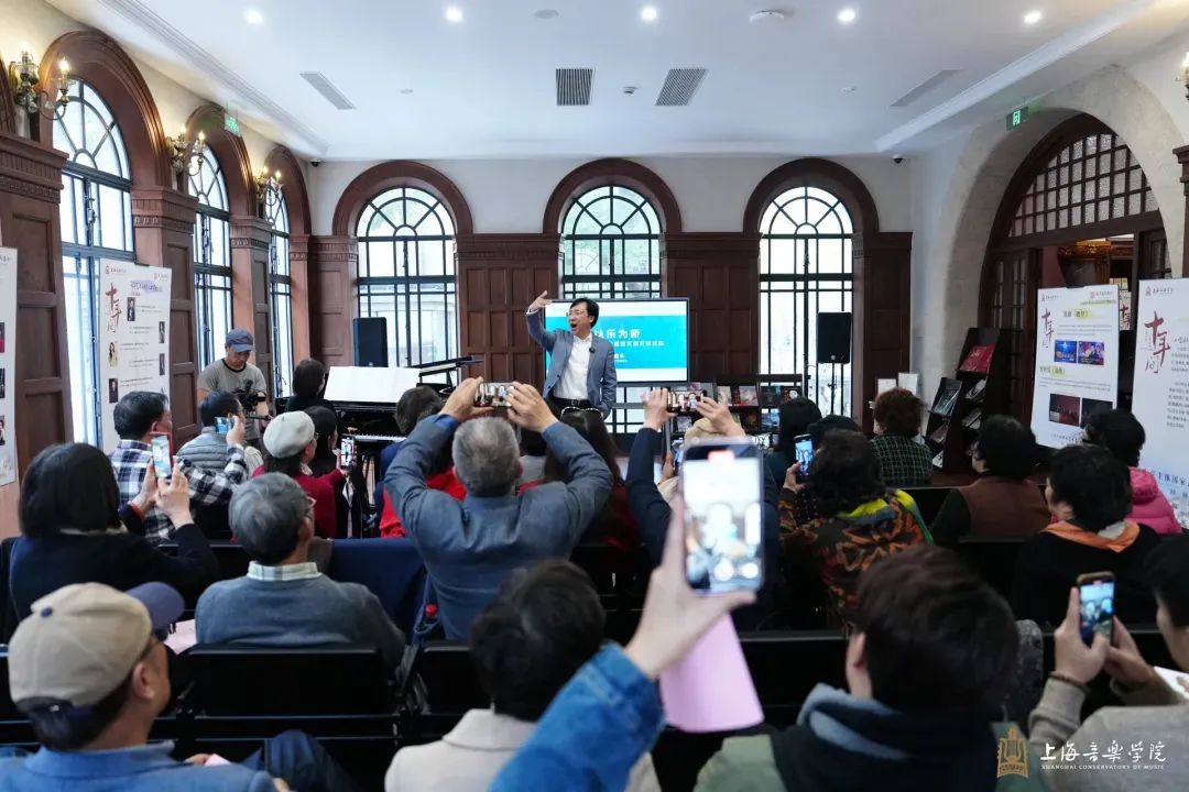 看完展览,来听一堂机会难得的名家讲堂,过一个知识新年、文化新年,也成为很多市民游客的选择。元旦上午10:00,在上音的“明星”建筑——音乐城堡,2025年的新年首次“蔡元培美育大讲堂”正式开讲,上音原院长江明惇教授为市民朋友带来了《民歌漫议》专题讲座,受到了众多乐迷追捧。
