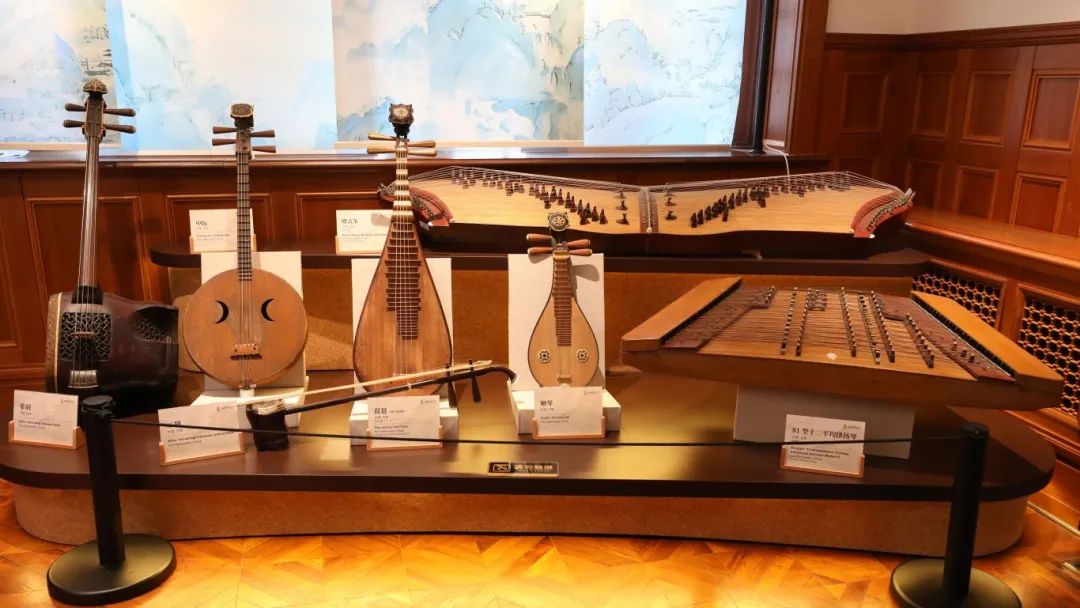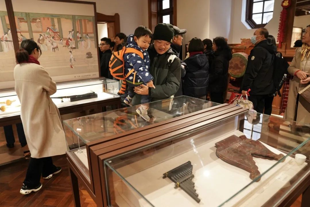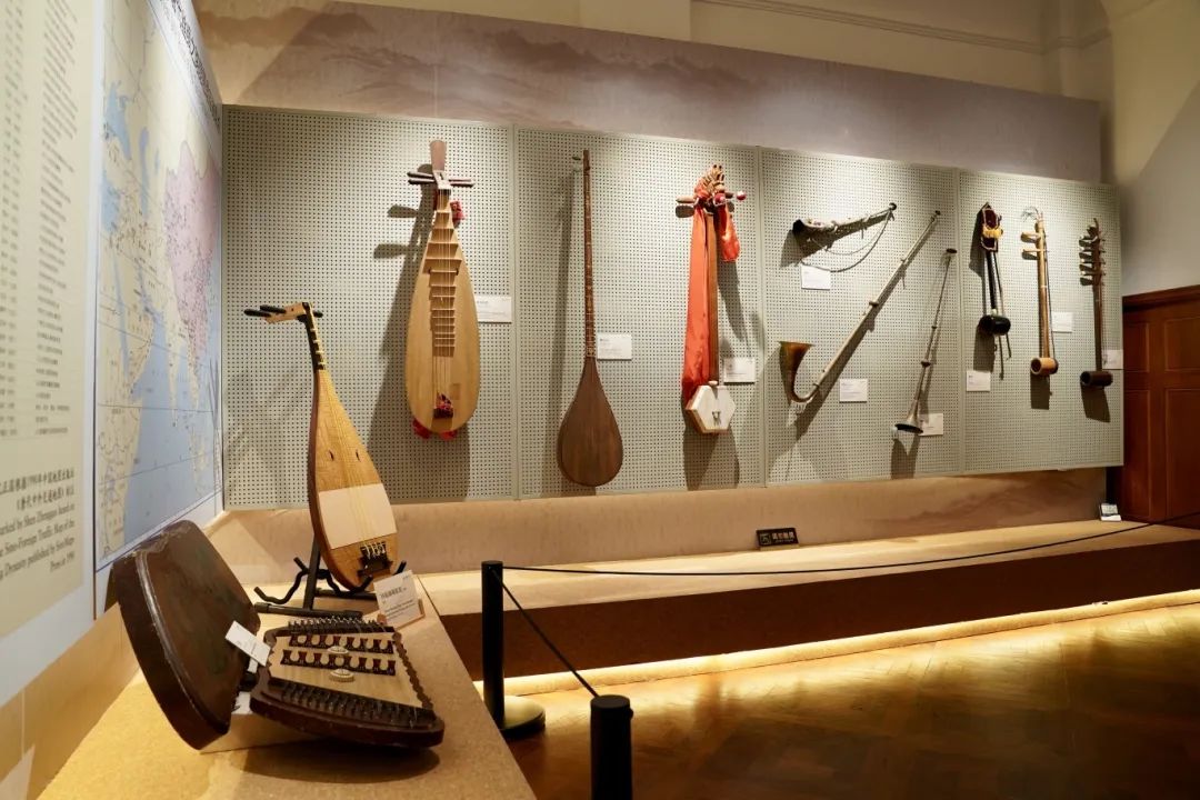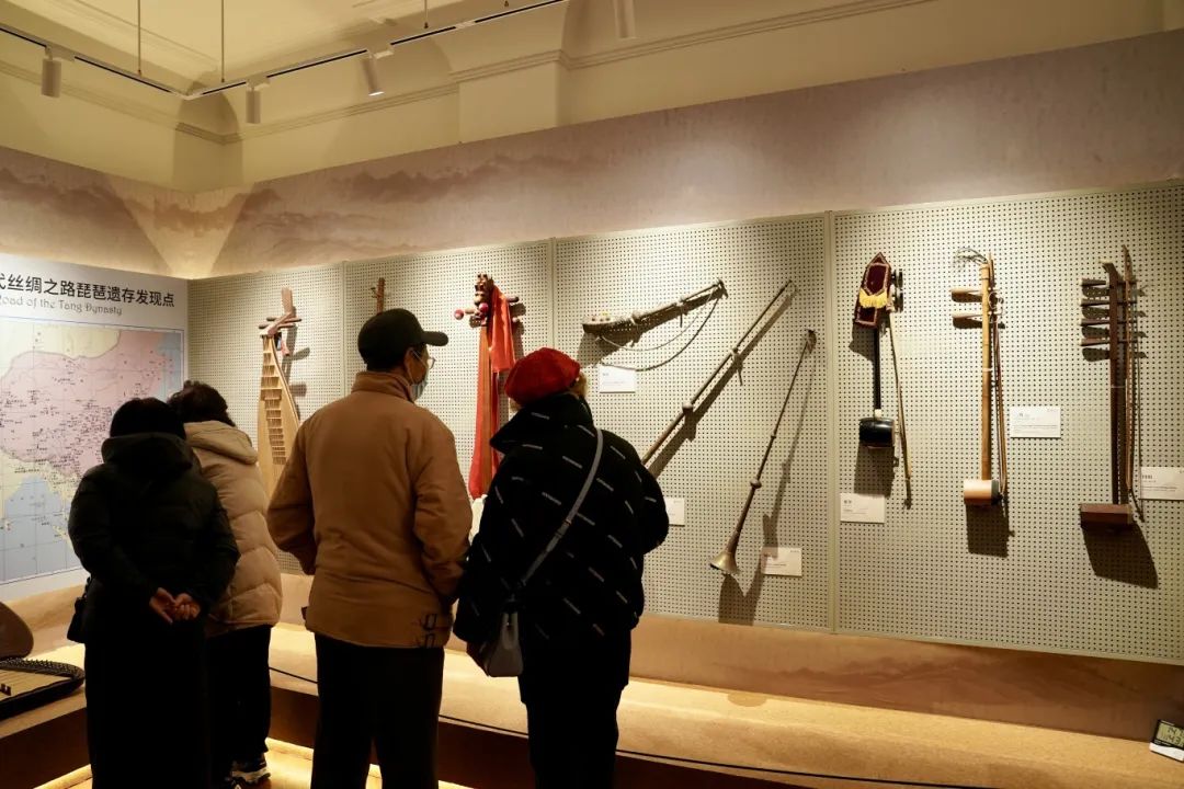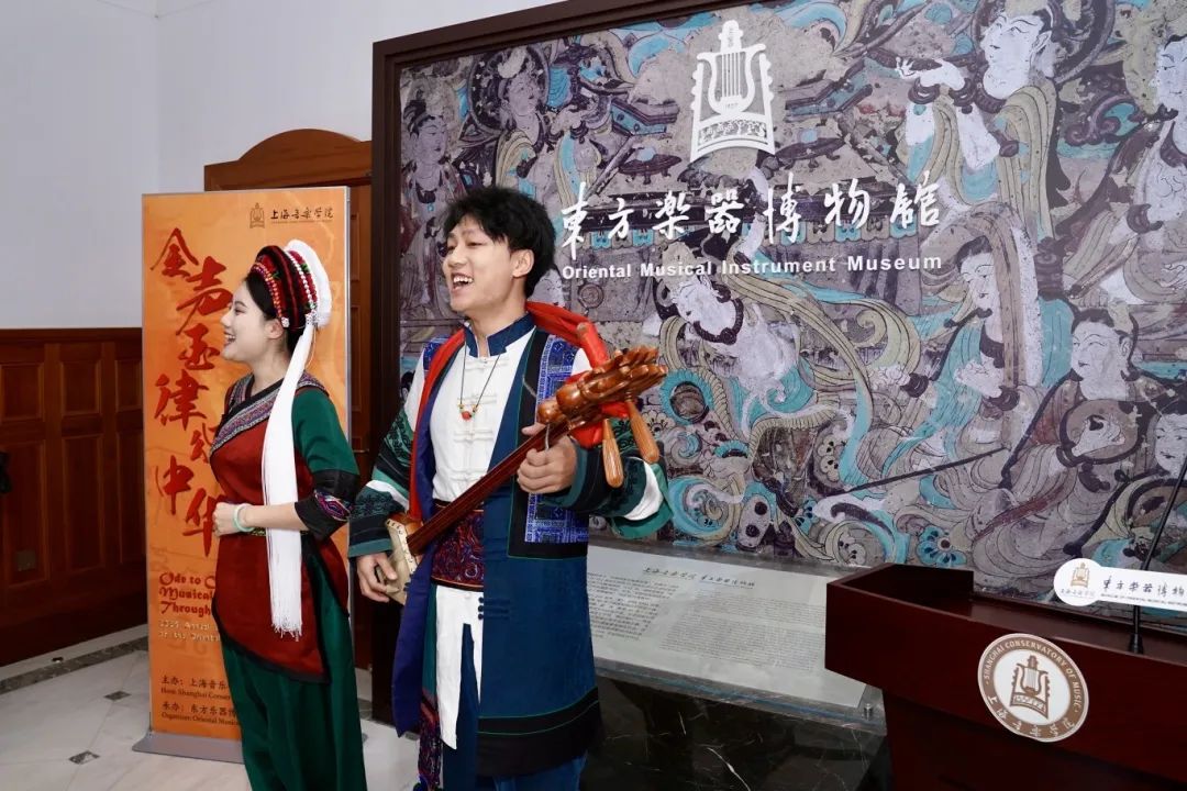 新年第一天,在上音六大历史保护建筑之一美育楼中的东方乐器博物馆全面更新。元旦当天上午9点半,在上音白族学生赵广原、赵章利兄妹弹唱极富民族特色的歌曲《迎贵宾》后,全新策划的“金声玉律颂中华—2025年东方乐器博物馆年展”正式开展。展览甄选东方乐器博物馆之精品,以“乐史熠熠 古今相继”“乐声袅袅 融贯神州”“乐音振振 赓续文脉”三大篇章,以器说史、以器观俗、以器见人,讲述民族交往交流交融的历史,通过乐器彰显中华文明博大精深。