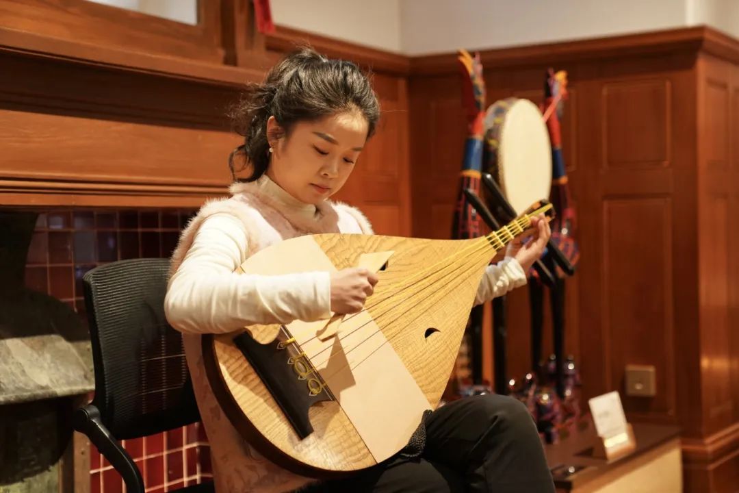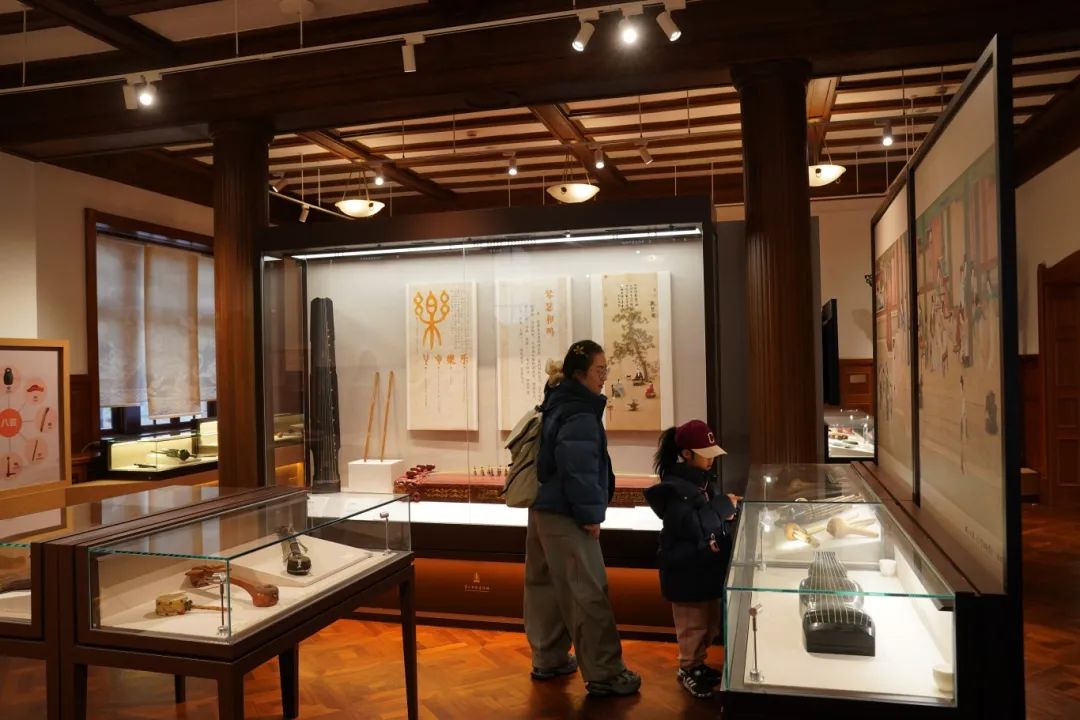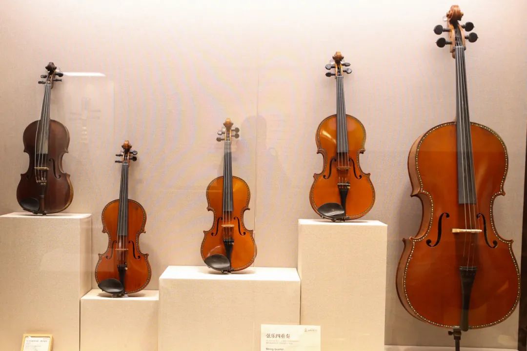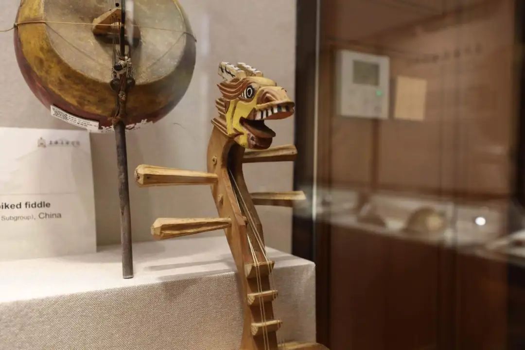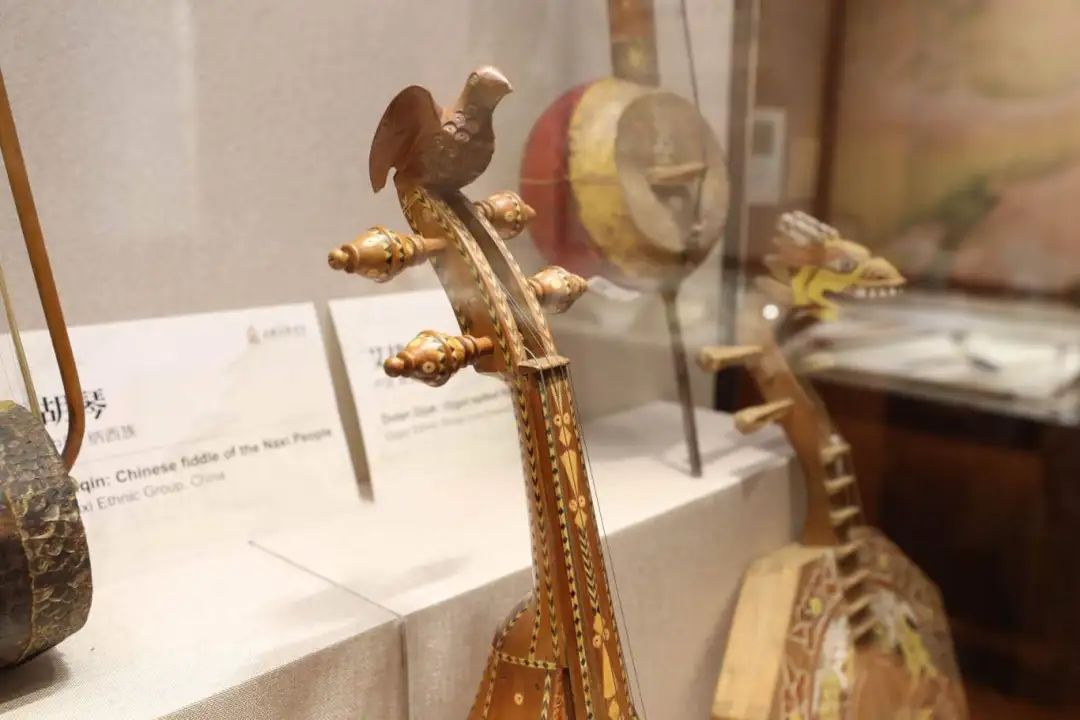 新年第一天,在上音六大历史保护建筑之一美育楼中的东方乐器博物馆全面更新。元旦当天上午9点半,在上音白族学生赵广原、赵章利兄妹弹唱极富民族特色的歌曲《迎贵宾》后,全新策划的“金声玉律颂中华—2025年东方乐器博物馆年展”正式开展。展览甄选东方乐器博物馆之精品,以“乐史熠熠 古今相继”“乐声袅袅 融贯神州”“乐音振振 赓续文脉”三大篇章,以器说史、以器观俗、以器见人,讲述民族交往交流交融的历史,通过乐器彰显中华文明博大精深。