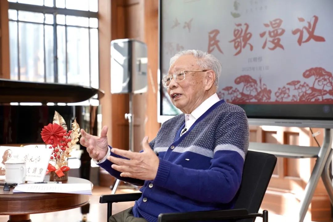 在这次的讲座中,江明惇先生着重讲解了中国传统民歌的起源、发展、类别和特征,东北、湖南的号子,浙江、山西、陕北、内蒙古的山歌,“孟姜女调”“鲜花调”等小调,他信手拈来,满满都是精彩的中国故事。
