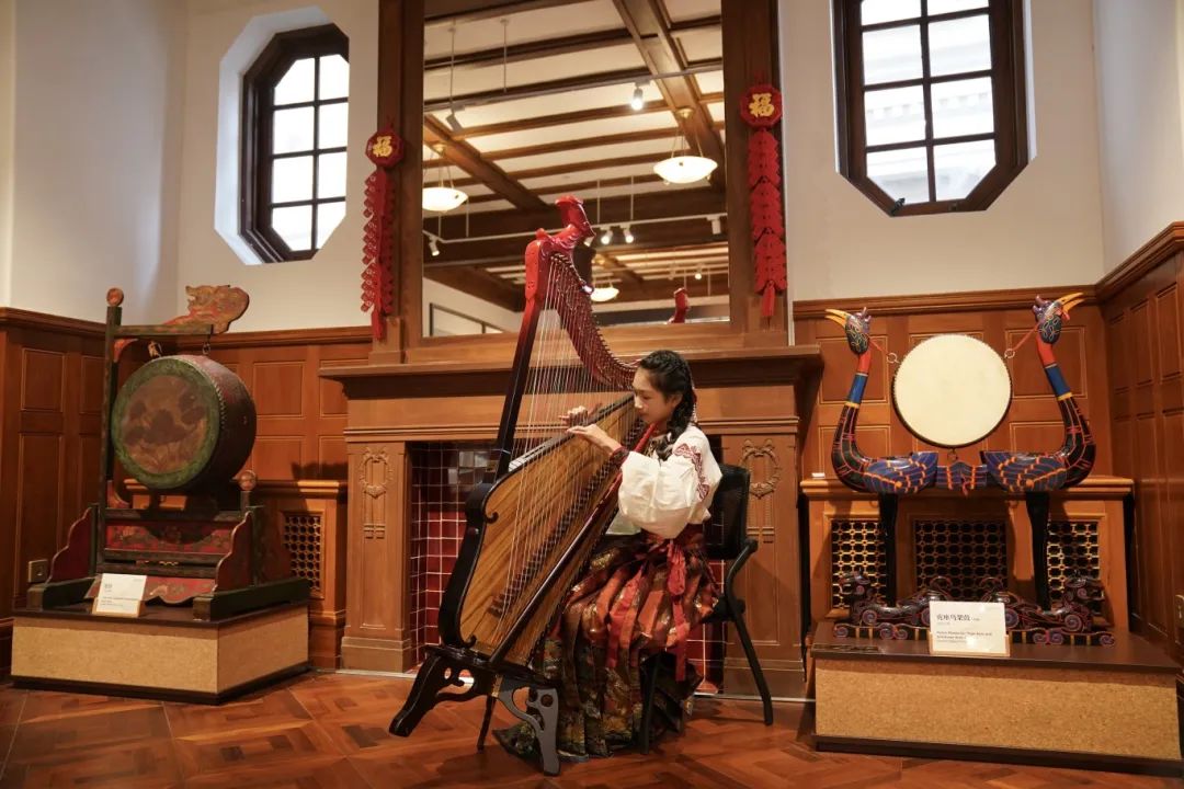 观展之余,市民还在博物馆现场领略到一场跨越时空的音乐对话:东方乐器博物馆青年教师褚婉吟用仿唐琵琶演奏了《水鼓子》,博物馆的小粉丝、上海市建平西校学生覃诗涵带来了箜篌独奏《金蛇狂舞》,独特的中国音色,让观众沉浸在共同的中华情感中。不少观众表示,在2025年东方乐器博物馆新展中,加深了对中国民族音乐和中华文明的发展史,以及中华民族交往交流交融的历史进程的理解。