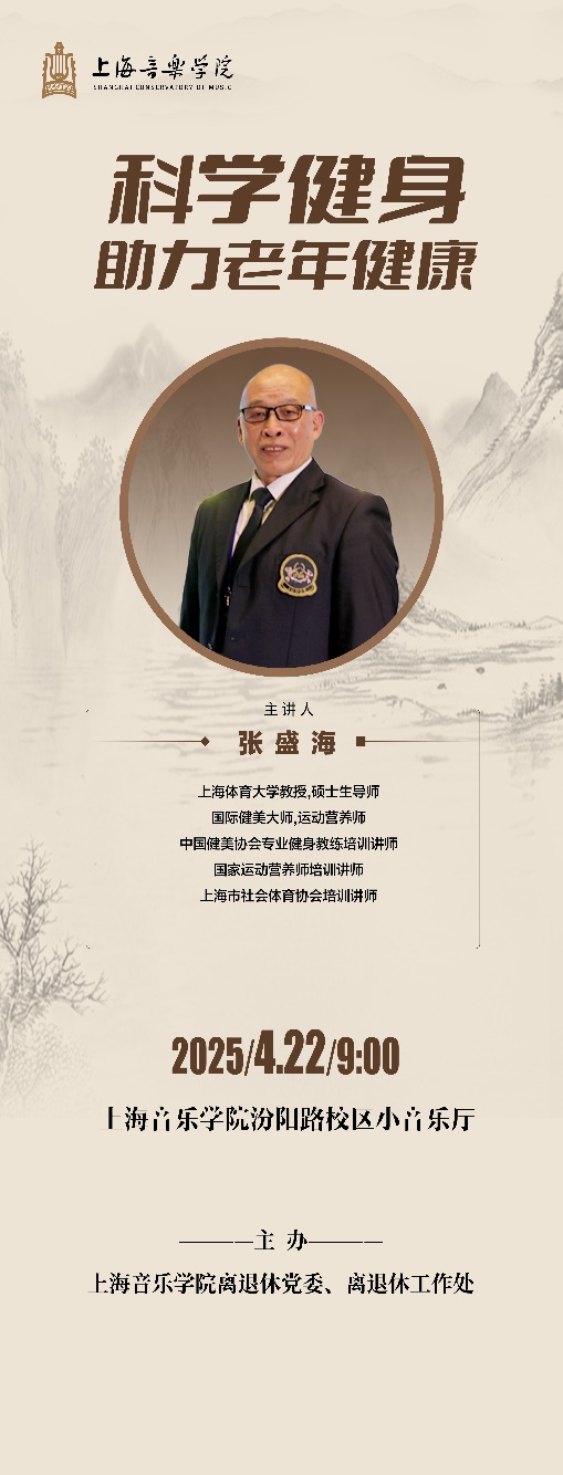 为了关爱离退休教职工的健康,传播健康理念,提高生活质量。上音离退休党委、离退休工作处于2025年4月22日举办“科学健身助力老年健康”讲座,邀请到张盛海教授,他就职于上海体育学院,同时也是国际健美大师、运动营养师、中国健美协会专业健身教练培训讲师、国家运动营养师培训讲师、上海市社会体育协会培训讲师。讲座由离退休党委书记、离退休工作处处长易慧主持,近60位老同志参加。