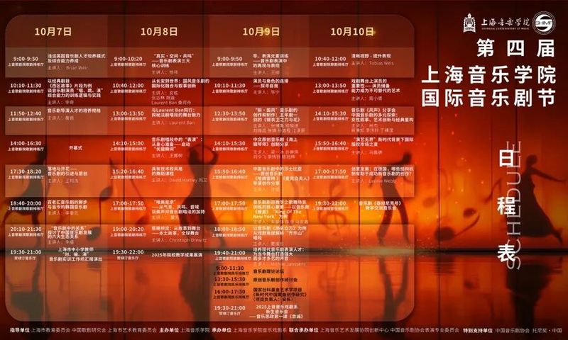 本届音乐剧节由上海市教育委员会、中国歌剧研究会、上海市艺术教育委员会指导,上海音乐学院主办,上海音乐学院音乐戏剧系承办,上海音乐艺术发展协同创新中心、上海市剧本创作中心、中国音乐剧协会表演专业委员会联合承办,中国音乐剧协会、托尼奖·中国为特别支持单位,期间将举办26场学术讲座与工作坊,覆盖创作、表演、教学、研究全领域。