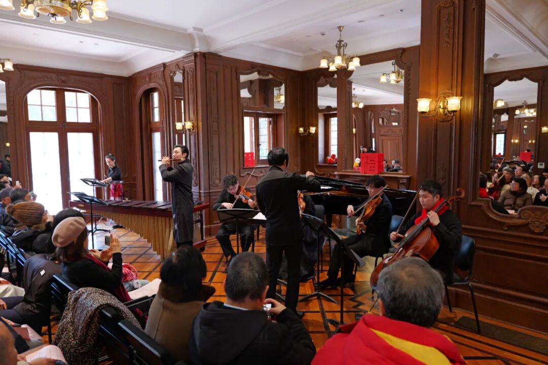 这是上音连续第三年在大年初一与市民相约新春音乐会。上音校领导、师生代表、市民游客齐聚一堂,共贺新春,百年历史建筑内回荡着奔腾激昂的旋律,观众在乐声中感受新春的欢腾与希望。