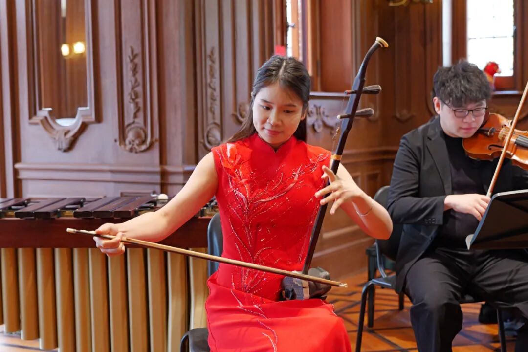 二胡博士生朱婧与作曲博士生徐悦栋以一曲《赛马》,气势如虹,将马年的热烈氛围推向高潮;室内乐团版《绒花》温情收尾,旋律温婉、余韵悠长,以深情改编唤醒经典旋律的隽永。