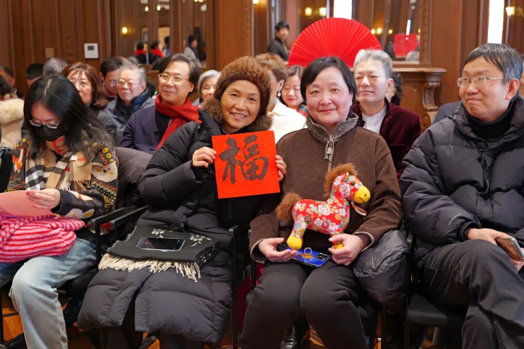 音乐会现场更有击鼓传花环节,三位幸运的市民观众获得院长廖昌永手写“福”字。尾声部分,现场观众合唱歌曲,将氛围推至高潮,现场洋溢着新春佳节喜庆祥和的节日氛围。