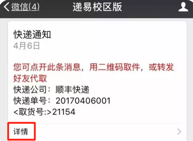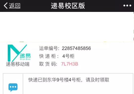 1、快递到站后,同学皆会收到微信公众号取件通知: