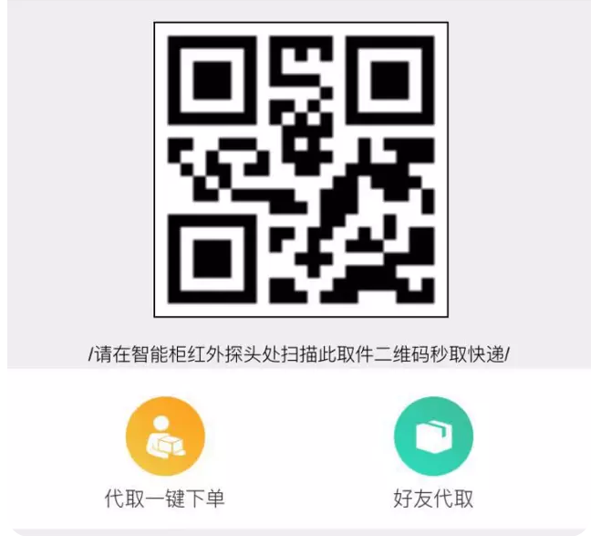 将上图的[二维码]对准相关智能柜的扫码区,即可开箱取件。