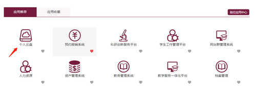 或通过“统一门户”-“应用中心”-“个人云盘”登陆