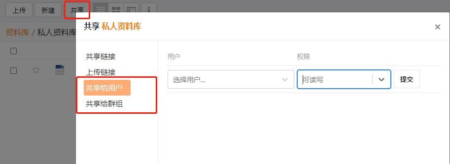 查看其他用户共享给本人的资料库或者目录;