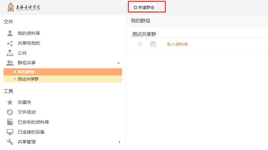 建立群组、查看本人所在群组的共享资料库或者目录;