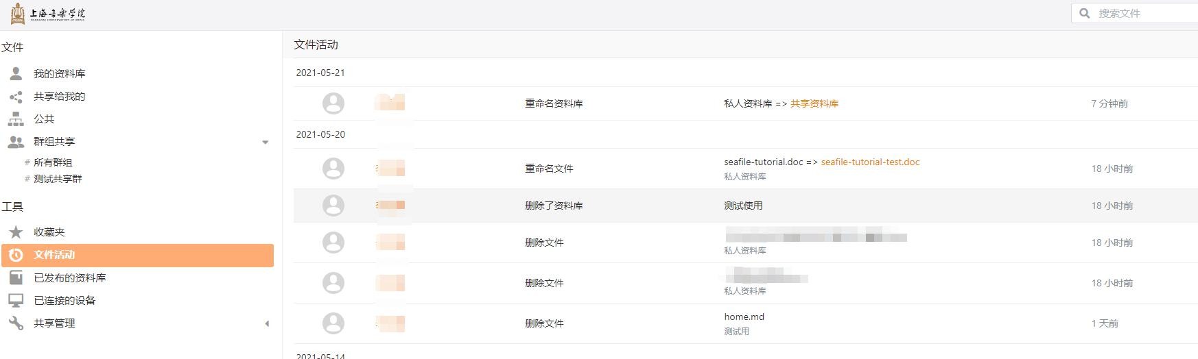 查看网盘中的文件活动;