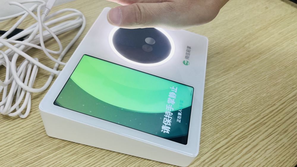 2、将手掌的掌心靠近设备的识别区域上方“10mm”位置,手掌掌心充分在识别区域展示(如下图);