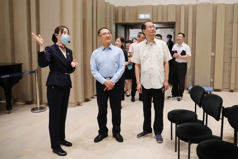 黄冲主席一行首先参观了上音歌剧院,详细了解这一上音面向社会、服务人民的城市文化新地标的建设历程和主体构造。随后,黄冲主席在歌剧院贵宾室亲切慰问我院市、区两级政协委员并开展交流座谈。