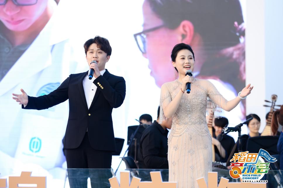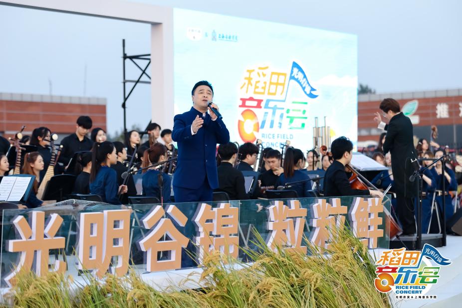 2023年10月16日,由上海音乐学院统战人士和师生策划演出的稻田音乐会在光明食品集团崇明基地隆重举行。在希望的田野上,在金色的稻浪中,上音师生奏响丰收喜乐,歌颂祖国盛景。本次音乐会由光明农发集团主办,上音党委统战部、艺术处、民乐系协办,是双方第二次合作举办稻田音乐会。光明集团党委副书记朱晨红,光明农发集团总裁刘红强,上音党委统战部副部长熊伟明等出席此次音乐会。
