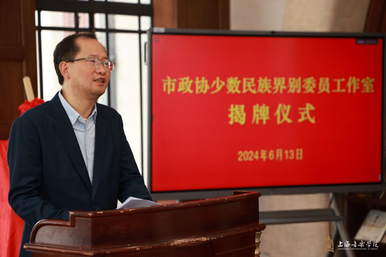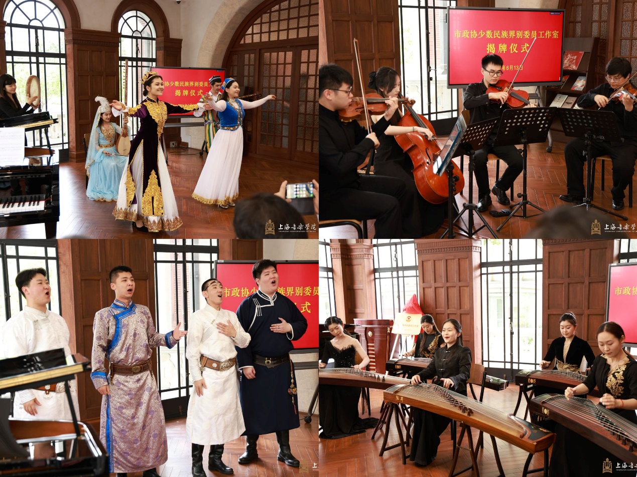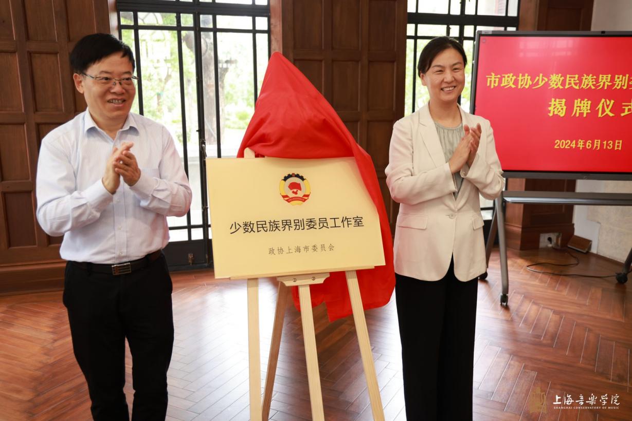 6月13日下午,市政协少数民族界别委员工作室揭牌仪式暨跨界别活动在上海音乐学院音乐城堡内隆重举行,市政协副主席金兴明和院党委书记裴小倩为少数民族界别委员工作室揭牌。市政协常委、民族和宗教委员会主任,少数民族界、宗教界召集人闵卫星,市政协常委、民族和宗教委员会常务副主任袁鹰,市政协地区和界别工作委员会常务副主任杨德妹,市政协民族和宗教委员会副主任、市民族联副会长、东浩兰生(集团)有限公司投资发展部总经理唐雯,市政协民族和宗教委员会专职副主任徐梅,市政协地区和界别工作委员会专职副主任吉玉萍,院党委副书记曹荣瑞出席活动。