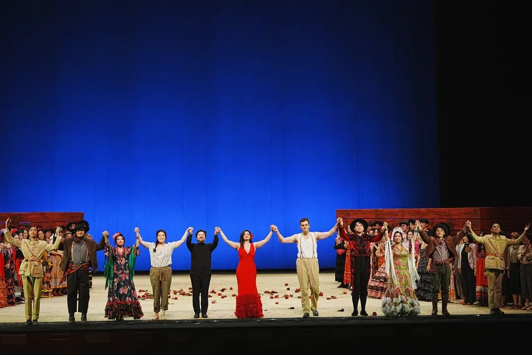 “Bravo!” “Bravo!” 当欢呼声和掌声在上音歌剧院歌剧厅内一浪高过一浪、一次又一次涌向台前,连续四晚火爆上演的歌剧《卡门》画上圆满句号。 这部由上音歌剧院与法国波尔多国家歌剧院联合制作的比才歌剧《卡门》,不仅成就了中法建交60周年的一段文化合作佳话、凸显了上音的国际资源配置能力;也让上音青年歌剧团、上音交响乐团和上音合唱团的学生们,以及参与演出和台前幕后制作的上音师生们,通过与国际团队的合作来迅速提升自身专业能力;更在2024年岁末,为申城剧迷、文艺爱好者贡献了又一部上音精品力作。 艺术总监、院长廖昌永认为,4场演出渐入佳境,“演出期间我就一直在剧院里,在观众席里在听大家的讨论,我发现所有的观众朋友们对这部戏的评价都非常好,可以说是今年申城岁末舞台最出彩的戏之一了。当然学生们演出时还有点青涩,但这种学生气就是我们学校制作的一个特色,是十分可贵的。” 法国波尔多国家歌剧院对于上音团队赞不绝口。导演埃马纽埃尔·巴斯泰(Emmanuelle Bastet)表示,“学生和职业歌剧演员不一样,但我们并没有因此降低要求。事实证明,上音的学生们十分努力,最终演出的效果也很令人满意。” 从舞台效果到卡司阵容 上音版《卡门》令人惊艳 这是上音歌剧院和法国波尔多国家歌剧院的第一次合作,双方团队在合作中不断擦出火花,确保了这部剧高水准高质量。廖昌永表示,虽然这部剧不算“大制作”,但呈现的效果令人惊喜:“舞台制作简洁明了,又恰达好处地体现了塞维利亚的建筑风格,服装设计也是如此,灯光也很好地配合剧情发展,我感到很满意。” 导演埃马纽埃尔·巴斯泰表示,法国团队从今年9月进驻上音,指导上音学生排练,但之前双方团队都已各自做好充分准备。“作为全世界上演率最高的一部歌剧,重编《卡门》的确有不少压力。在来中国前,我们在法国就已经开始工作了,大家会一起研究这个剧本,包括舞美、灯光、服装等方面,都为这部剧度身定制了一些创意。到了上海以后,看到上音的学生排练过程,我们又有一些新的想法,和这里的老师学生再沟通,不断打磨这部歌剧,可以说每一天都是累并快乐着。” 主演卡司分AB两组,一组是国际歌剧新秀——来自阿塞拜疆的女中音埃尔米那·哈桑、来自法国的男高音朱利安·亨利克分别饰演女主角和男主角;而另一组则是上音版——由音乐戏剧系副教授董芳饰演卡门,上音杰出校友张龙、博士研究生朱贺饰演唐·何塞。此外,上音博士研究生顾文梦、范雪妍饰演米凯拉,博士研究生胡斯豪、硕士研究生张曦饰演艾斯卡米洛等。 在导演埃马纽埃尔·巴斯泰看来,两组卡司各有千秋。“主演的国籍不一样,A组的男高音是法国人,用母语表演可能更得心应手。而上音师生的表演在语言和艺术表达上也近乎完美。在《卡门》团队,每个人都付出了巨大努力,尤其是我们在一边排一边创作,等到合唱或者孩子们表演时,所有主演都非常有耐心在等待,这种敬业精神值得称赞。” 组国际团队 制作世界级经典 对于此次的国际合作,廖昌永表示,“进入新时代,我们的国际化进入了快车道,我们与世界上52个国家的学校、专业团体和剧院建立了合作机制,例如芬兰萨翁林纳歌剧节、爱丁堡音乐节,在歌剧领域,与意大利科莫歌剧院联手打造《塞维利亚的理发师》、与德国基尔歌剧院联手打造《茶花女》……全面覆盖‘教创演研’,一方面是积累经验,一方面也在世界舞台上展示中国音乐教育教学的成果,增强学校的办学国际化能力。” 指挥家林大叶自嘲是此次《卡门》团队最累的一位——3个小时的演出,他全程站立,休息时就要擦去额头的汗水。“《卡门》有很多版本,上音这次选的是宣叙调版,全长达3个小时。这么经典和伟大的一部歌剧由我来指挥,所有的压力在舞台呈现的时候都变成了动力。” 林大叶对于上音交响乐团的表演也打出高分:“都是上音的在校生,在非常短的排练时间内完成如此精彩的表演令人刮目相看。现在正好是所有人期末考试的时间,对于他们来讲压力非常大,但是这些年轻音乐家们顶住了压力,给大家呈现出了精彩的演出,这就是上音精神。” A组饰演斗牛士艾斯卡米洛的胡斯豪,就是学校国际合作的受益者。这位身高1.88米的在读博士研究生,先后师从周正教授和廖昌永教授,活跃于国内外歌剧舞台。他在演出后表示,作为男中音的他此前曾多次表演《斗牛士之歌》,但参演一部3小时的歌剧还是第一次。“歌剧《卡门》中的斗牛士,可以说是所有男中音梦寐以求的角色。但之前主要是练的演唱这一环节。而这一次和法国波尔多国家歌剧院合作,让我学到了很多表演的经验,法语也进步了不少。” 歌剧作为一门集大成的综合艺术,不仅被誉为“艺术皇冠上的一颗明珠”,更被视为体量庞大、运作精密的“艺术航母”。此次上音版《卡门》,不仅让上音歌剧团的学生得到了锻炼,也让上音交响乐团和合唱团的学生获益匪浅。 结束今晚在上海的四场演出后,上音团队还将歌剧《卡门》的音乐会版带到无锡,于12月14日献演无锡大剧院。正如廖昌永所说:“创作艺术实践和科研是反哺检验我们教学的一个非常重要的手段。我们培养的学生怎么样?舞台是检验他们最好的标准。”