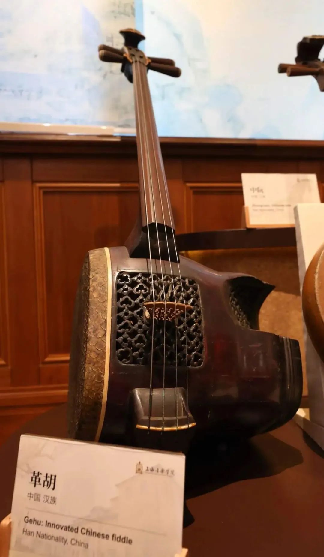 新年第一天,在上音六大历史保护建筑之一美育楼中的东方乐器博物馆全面更新。元旦当天上午9点半,在上音白族学生赵广原、赵章利兄妹弹唱极富民族特色的歌曲《迎贵宾》后,全新策划的“金声玉律颂中华—2025年东方乐器博物馆年展”正式开展。展览甄选东方乐器博物馆之精品,以“乐史熠熠 古今相继”“乐声袅袅 融贯神州”“乐音振振 赓续文脉”三大篇章,以器说史、以器观俗、以器见人,讲述民族交往交流交融的历史,通过乐器彰显中华文明博大精深。