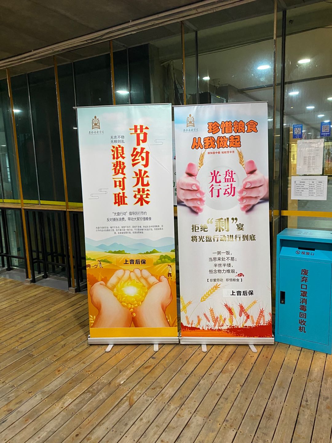 二是开展厉行节约,反对浪费,光盘行动的宣传活动,在食堂入口处树立易拉宝、醒目处张贴宣传标语等,营造舆论氛围;