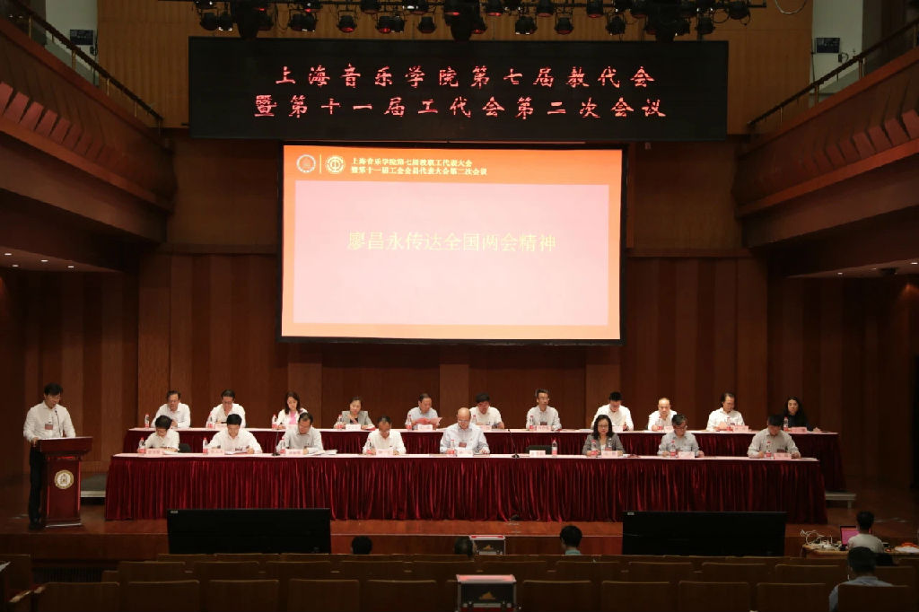 在雄壮的《国际歌》声中,上海音乐学院第七届教职工代表大会暨第十一届工会会员代表大会第二次会议胜利闭幕。