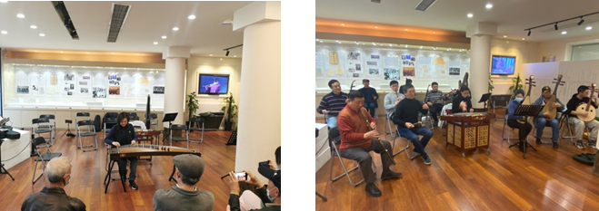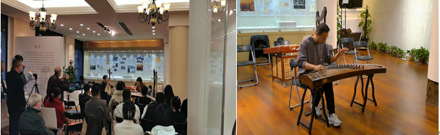 12月16日下午,上海音乐学院艺术成果展厅迎来了第三场丝竹雅集活动,此次雅集活动中上海音乐学院民乐系古筝专业罗晶副教授莅临现场,演奏了《三六》与《茉莉芬芳》两首作品,罗老师的表演温文儒雅、清新隽永,为大家带来了一种不一样的江南丝竹。此外,我馆的褚婉吟老师也参与了此次雅集活动,与国乐研究会的老师们一起演奏了《中花六板》《行街》,在“玩”丝竹中感受江南丝竹的魅力,也向大家展示着中国传统音乐的魅力与生命力。