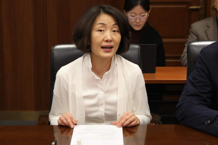 民建上海市委组织部部长高文红宣读《关于成立民建上海音乐学院支部决定的通知》《关于任命民建上海音乐学院支部主委的决定》