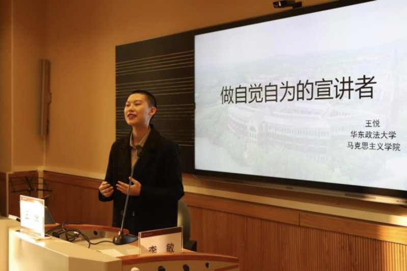 王悦结合“自觉与自为”和“校史宣讲的分享”两部分与大家交流。讲述作为一个宣讲者应该关注对象、内容及效果,注重反思和改进。强调理论宣讲应以“问题”为导向,其中校史宣讲则应该重“故事”,重“情感”。为提升理论宣讲有效性,可以结合现代化技术,采用让听讲人乐于接受的方式进行理论的输出。