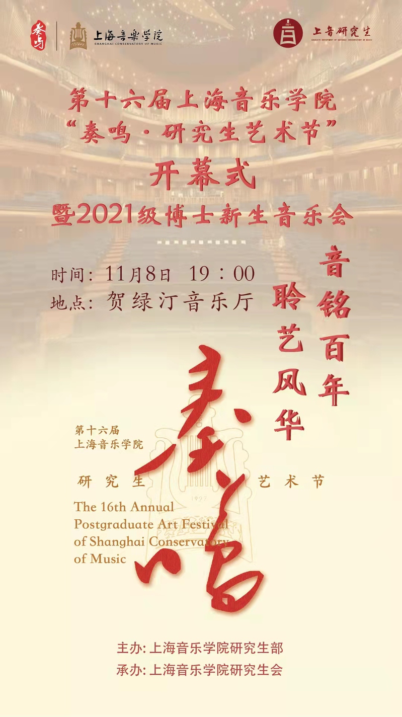 20211104第十六届上海音乐学院“奏鸣 研究生艺术节”开幕式暨2021级博士新生音乐会海报