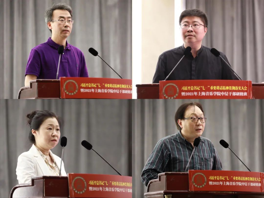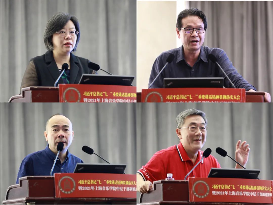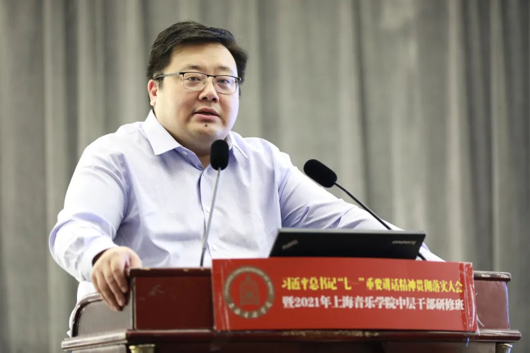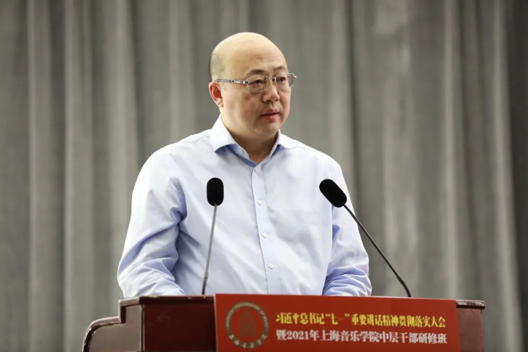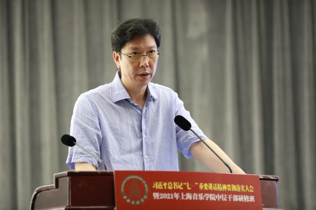 徐旭在讲话中对三天研修班的目的、意义、要求和成效做简要回顾,肯定了此次研修班的组织工作,并就下半年工作重心做出提示。他强调,习近平总书记“七一”重要讲话,对我们党开天辟地、筚路蓝缕、奠基立业,开创社会主义道路所取得的历史经验和伟大成就做了非常好的总结,也对未来的国家发展、民族的进步、人民的幸福指引了前进的方向。我们要通过持续学习,准确把握新发展阶段,深入贯彻新发展理念,落实好党的教育方针与文艺方针,加快构建新发展格局,推动学校“十四五”高质量发展,善于用新思想指导学校的发展规划、工作实际,指导艺术创作和艺术人才培养,指导我们实现学校从经典老牌学校向现代大学转型。在实现中华民族伟大复兴的“中国梦”征程中、在服务上海全面提升城市软实力的建设中,彰显上音的担当和作为!