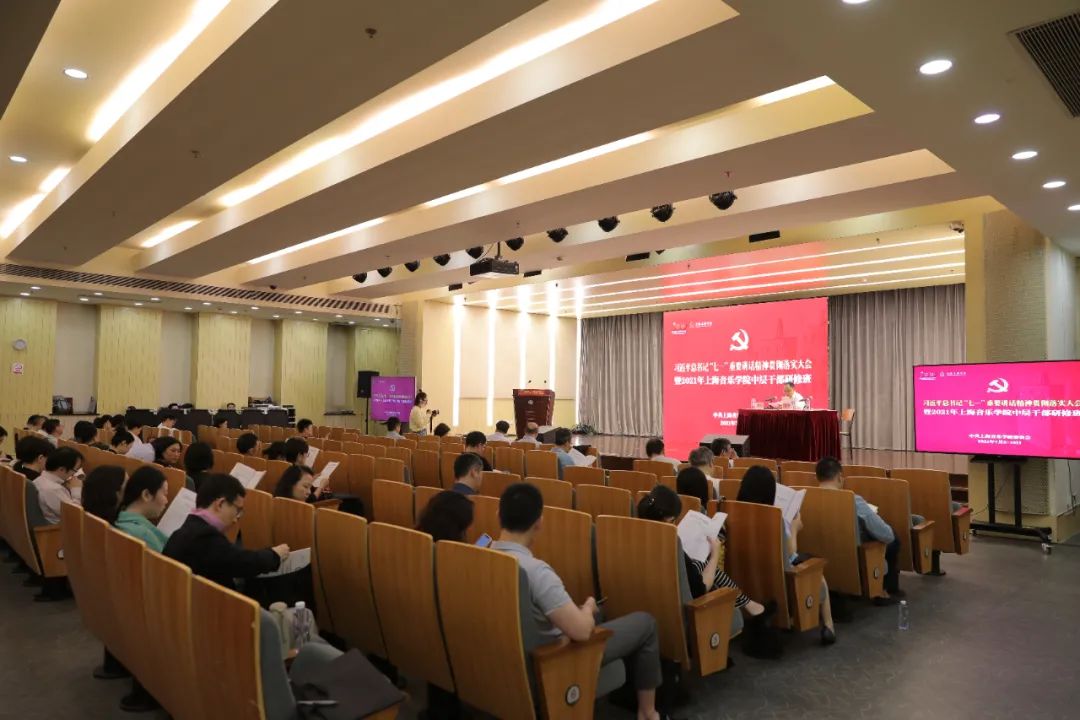 上海音乐学院科研工作会议在本学期中层干部研修班期间隆重召开,院领导班子、全校中层干部、教研室主任、教师代表、重要项目负责人等出席大会。大会指出,要将学习习近平总书记“七一”重要讲话精神成果转化为推动教育工作的强大动力,转化为奋进新征程、建功新时代的实际行动,办好人民满意的音乐教育。
