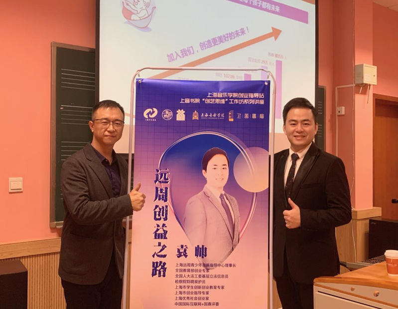 2022年9月28日上海音乐学院创业指导站联合上音书院开展了“创艺思维”工作坊在汾阳路校区北楼603进行了《远周创益之路》讲座,本次讲座由上海远周青少年发展指导中心理事长袁帅老师进行分享。