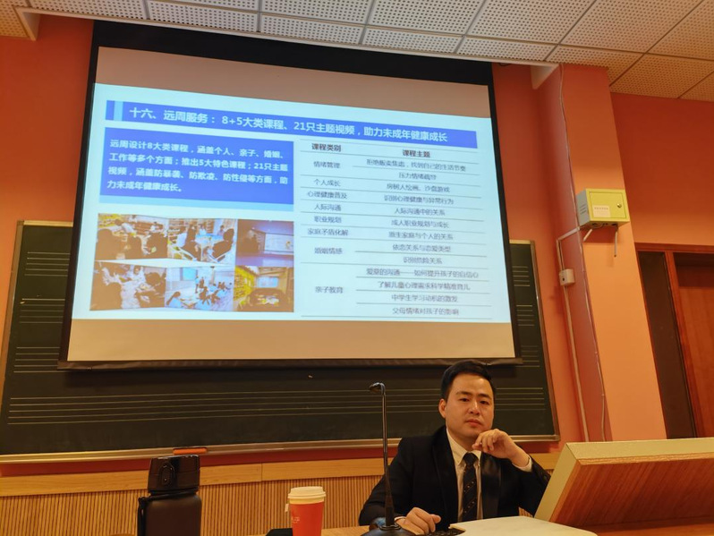讲座从远周青少年发展指导中心切入,讲述到公益项目的创业之路其中包括特殊群体的严峻现实到远周项目诞生定位、传播模式、治理体系的探索与完善、预防体系、公益向科研成果转化、科研与落地服务结合、团队组织结构与收支平衡、可持续长效发展保障体系、公益使命等内容。从具体个案联系创业细节从自身出发为学生答疑解惑。大学生创业需要承担更多的责任,需要将企业责任与社会责任相联系,发现社会问题时,需伸出援手将社会问题为己任。面对创业初期如何跨出第一步的问题时,需清楚目标与愿景从身边做起,将方法联系实际提高项目核心竞争力、品牌竞争力与可循环模式将顶层规划具像化,从周边的资源“借力”。
