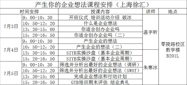 创业培训班启动时间:2023年7月3日--7月5日