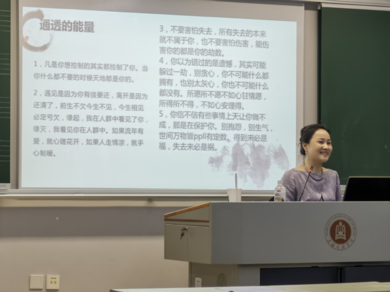 讲座一开始,顾老师讲述了自己的人生创业经历,并以此为例引发同学们对于自我定义和人生选择的思考。她将创业比作修行,虽然修行过程非常漫长,但终会收获成果。接着,顾老师通过将人分为五种动物属性,让同学们了解到人的五大先天特质,十分生动形象,帮助学生们更加透彻地了解自己,确立自己的人生目标。并且,顾老师提出学会做人不仅是创业的基础,更是一切的第一要素,我们应该要常怀感恩之情,永葆进取之心。然后,顾老师向同学们提出要成为优秀的管理者,最重要的首先便是管理自己,端正正确的态度。最后,顾老师总结道:努力很重要,选择更重要。好的企业想法是创业成功的开始,是避免创业风险的失败的第一道防线。