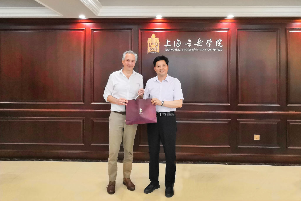 我院管弦系主任刘照陆、国际交流处处长陈晓翌、零陵路校区管委办主任张一、教务处副处长张来、图书馆办公室主任姜谷强会见时在座。