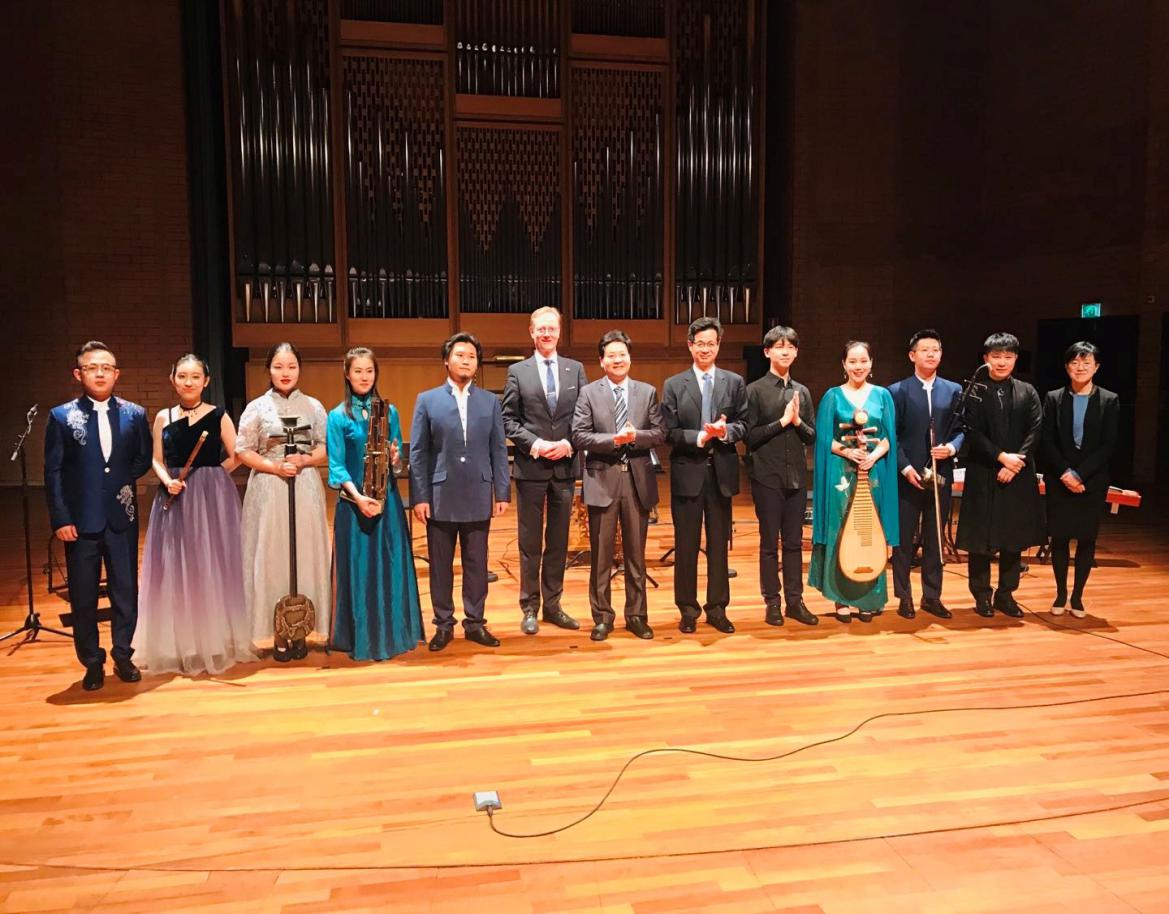 在庆典音乐会上,挪威国立音乐学院民族音乐系学生用挪威民族乐器口弦琴及哈登角琴展示了挪威民族音乐;随后,我院师生以独奏、丝弦五重奏、室内乐重奏的不同形式演绎了风格各异的中国民族音乐作品。整台音乐会色彩纷呈、节奏紧凑、不断博得台下观众的喝彩,当地师生为表演者精湛的技术和极具民族特色的音乐作品深深折服,纷纷表示对中国民族音乐有了进一步的认知和了解,认为此台音乐会是中国民族音乐最高水平的集中体现。至此,上海音乐学院精心筹划的“中国音乐文化中心”在欧洲正式挂牌成立。