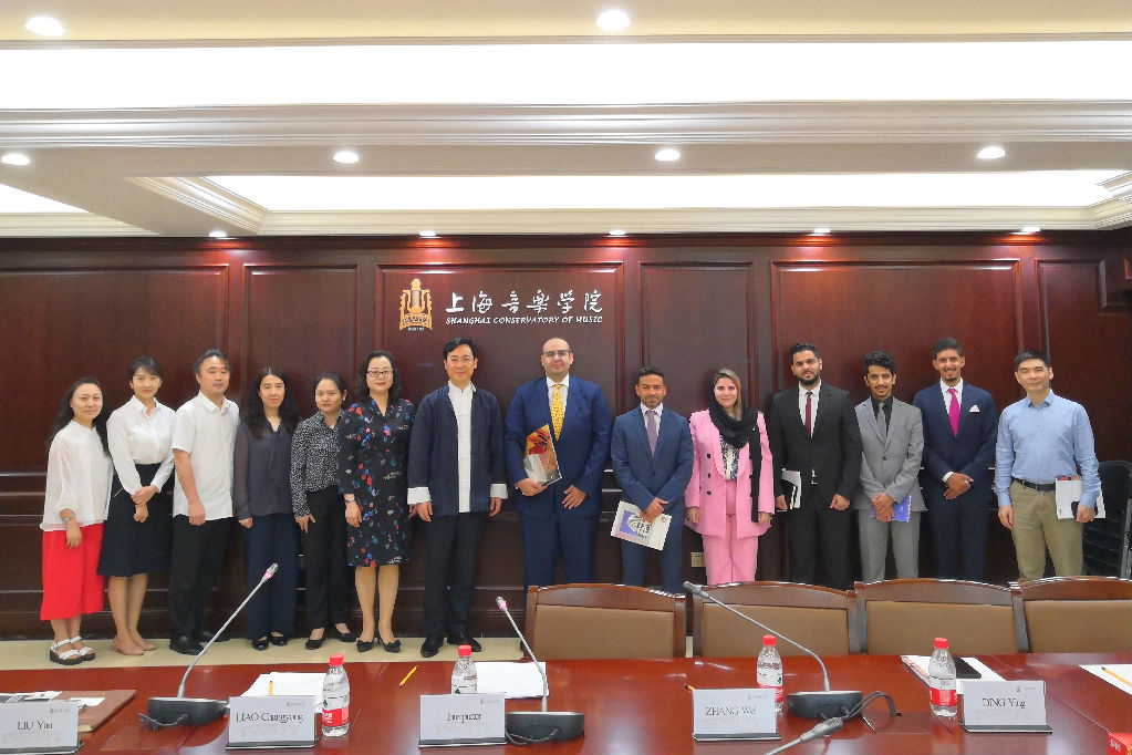 6月20日,上海音乐学院院长廖昌永、院党委副书记、纪委书记刘艳会见了沙特文化部战略司长拉康·奥图克(Rakan Altouq)、交流司长阿什拉夫·卡梅尔(Ashraf Kamel)等沙特文化部代表团一行6人,宾主进行了亲切会谈。