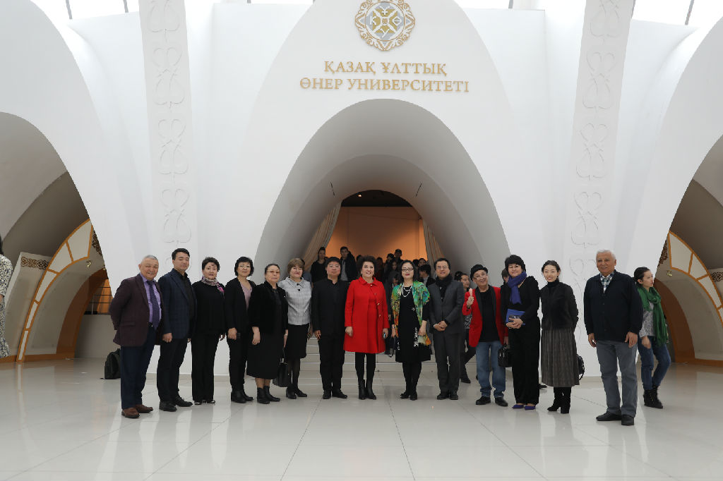 在哈萨克斯坦国立艺术大学访问期间,校长艾曼·穆萨卡佳耶娃教授热情接待了刘艳一行。双方回顾了两校多年良好的交流合作关系,并就各自学校当前的发展状况、课程设置、民族音乐的传承、师生互派互访、学生就业等领域进行了深入探讨并达成高度共识。访问团还应邀参观了哈萨克斯坦国立艺术大学的戏剧排演教室、音乐厅、校史展览,并欣赏了一场专门为中国客人准备的具有浓郁哈萨克民族特色的学生音乐会。访问期间,双方还共同签署了两校合作备忘录。