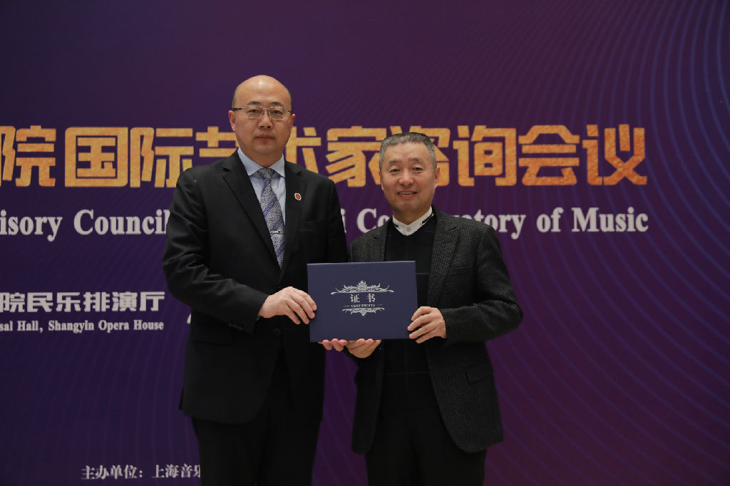 院党委书记徐旭为各位专家颁发上海音乐学院国际艺术家咨询委员会理事聘书。未能出席本次会议的美国旧金山音乐学院院长大卫·斯图,杰出校友、新加坡华乐团音乐总监与美国印第安纳南湾交响乐团桂冠指挥叶聪也获聘理事。