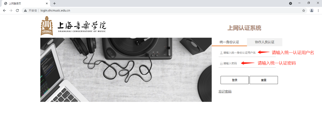 使用笔记本电脑,连接到SHCM无线信号后,浏览器会自动跳出以下登陆界面: