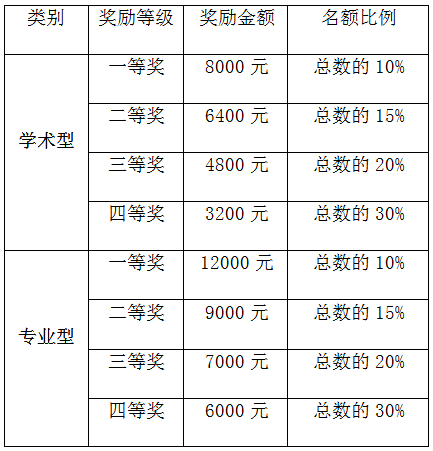 2、硕士研究生。拟定总获奖名额为当年可参评的全日制硕士研究生总数的75%,具体奖励等级、金额、名额比例见下表。