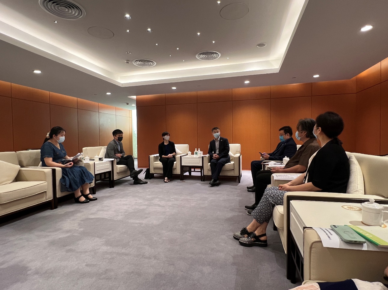 7月26日上午,香港特别行政区政府驻上海经济贸易办事处(驻沪办)主任蔡亮、副主任劳逸民、文化交流经理王悦倩一行访问我院。上海音乐学院副院长冯磊,发展规划处、艺术处、港澳台办公室、上音歌剧院等相关职能部门负责人与来宾座谈。