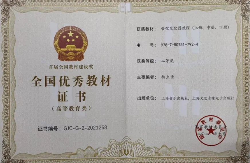 《管弦乐配器教程》获教育部首届全国教材建设二等奖