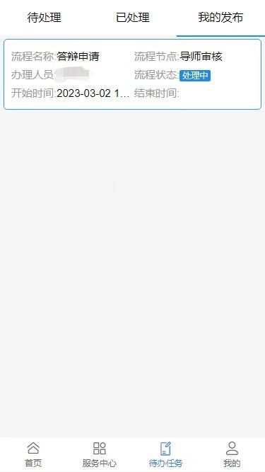 5.申请人可以在“待办任务”->“我的发布”中查看流程进度