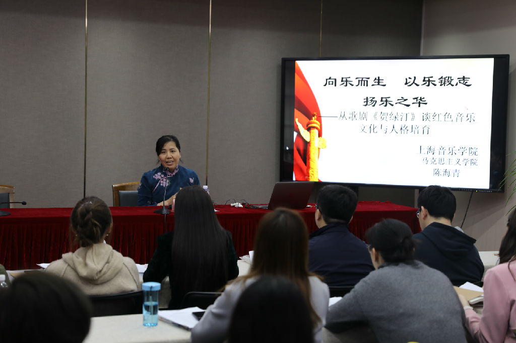 开班典礼结束后,上海音乐学院马克思主义学院陈海青老师以“向乐而生  以乐锻志  扬乐之华——从歌剧《贺绿汀》谈红色音乐文化与人格培育”为题为学员们授课,详细解读了红色音乐文化的内涵。陈海青老师的授课内容翔实,举例丰富,深入浅出,使学员们对如何弘扬红色文化,做好传播者和践行者有了更为深刻的理解。